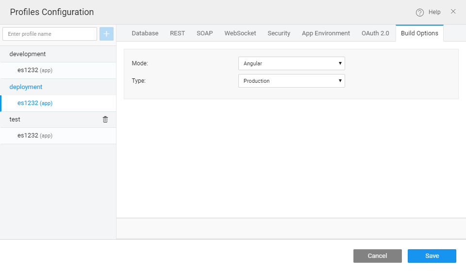 The Build Options are Read-Only for ‘Development’ build profile of the WaveMaker build. For other profiles such as ‘Deployment’ or the custom ones, you can choose from the above-specified modes.