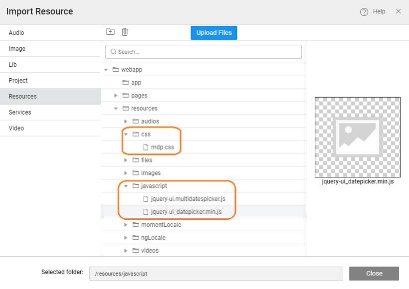 From Developer Utilities, select File Explorer and Import Resource. We need to import two files: