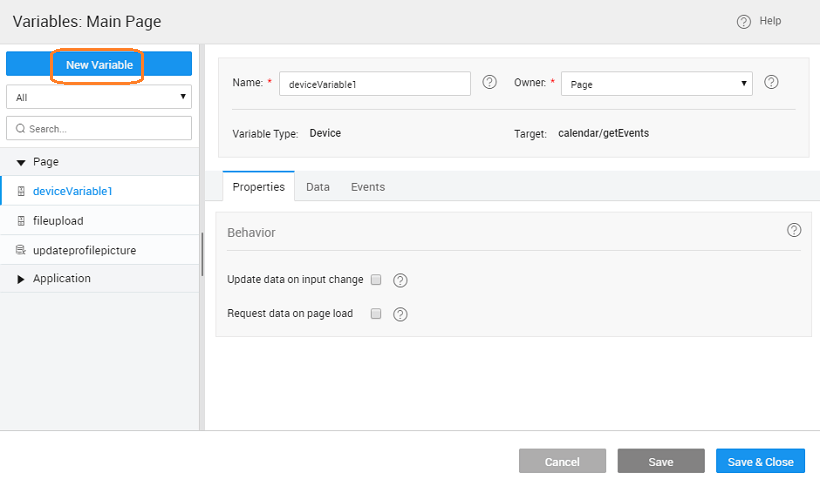 | Request data on page load | If checked, 'Page' variable will be triggered on page load while 'Application' variable will be triggered on application load. |