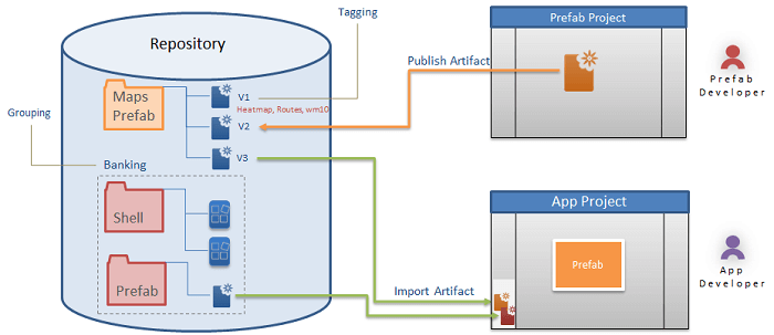 Prefab is developed from the Project Workspace, similar to any other app development, and then made available to other developers.