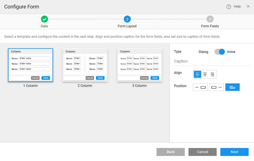 2. Select the display layout of the Form. You can choose from one-column, two-column or a three-column layout.