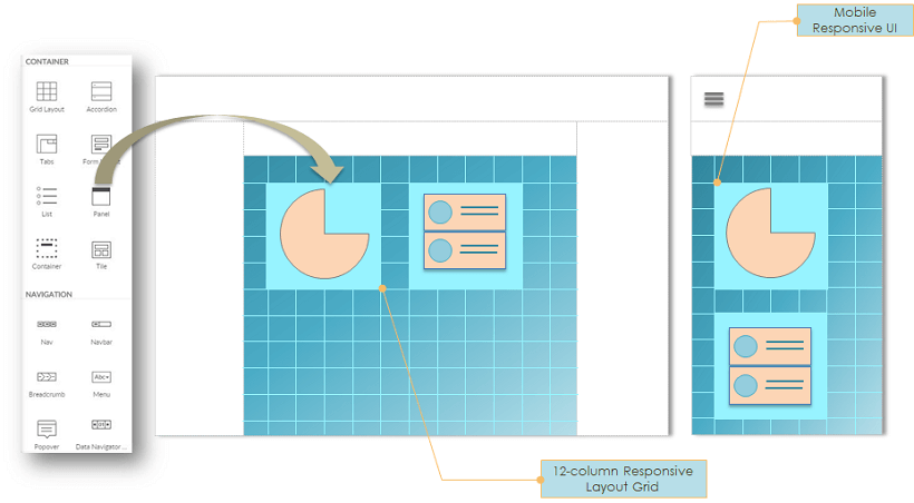 WaveMaker provides HTML/Bootstrap based widgets or UI Components, with rich interaction and for responsive design. Widgets are the building block of any application. They are the tools for exchange of information from the user to the project. Widgets eliminate repeated development and provide consistent behavior across browsers and platforms. Drag and drop action lets you add widgets to your project.