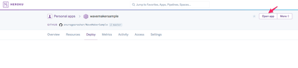 Open the WavaMaker App you want to deploy to Heroku.