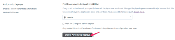 - Finally, enable auto deployment. Any push to GitHub repository will automatically deploy your application now.