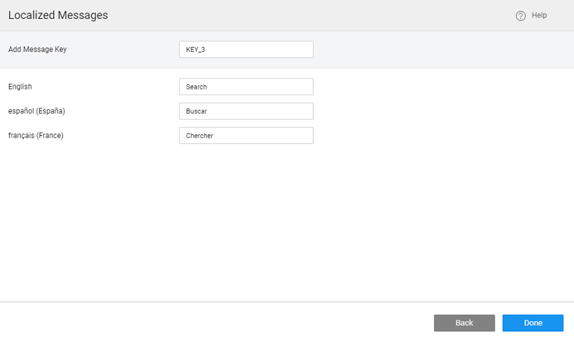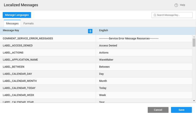 - Use + sign next to Message Key header to open the Localized Message Dialog.