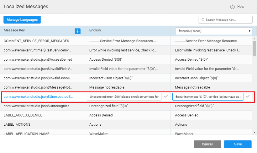• add the message key and the appropriate message for the multiple languages.