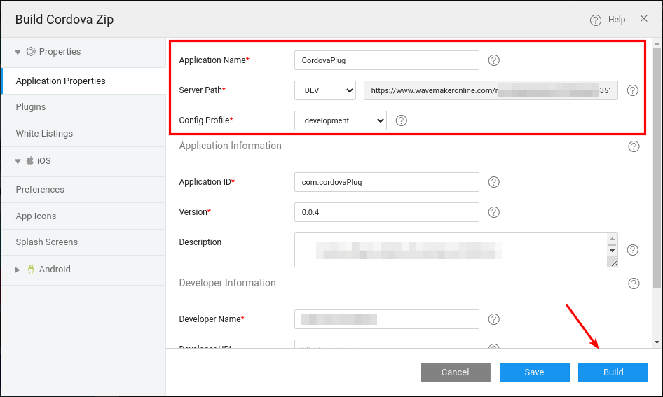 <url>is the application server url. The mobile installer will be generated from this Cordova will make backend calls to the url specified. (Refer the below image)Example :