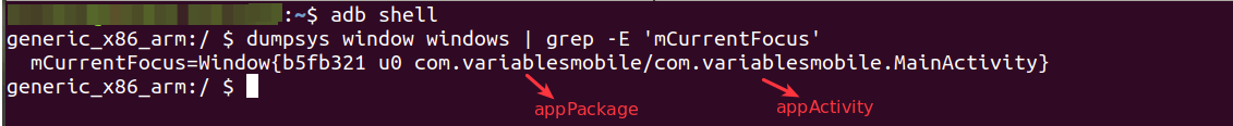 We can get appPackage and appActivity values by executing following commands in terminal,