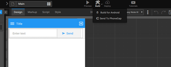 - On Send button tap, invoke the sendNotification service variable created above.Enter the text and click on button, push message will be delivered to the devices.