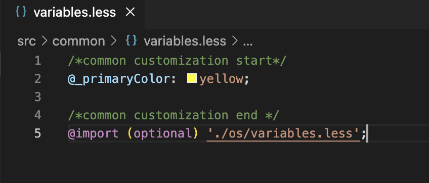 src/common/variables.less. For a platform-specific change, open correspondingvariables.lessof that platform folder. - If