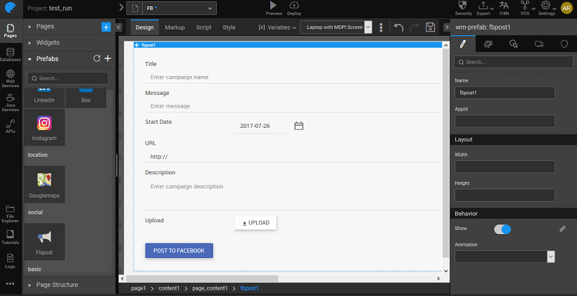 | QRCode prefab that ships with WaveMaker can be used to add any text or url to your app in the QRCode format. | Overview | ||